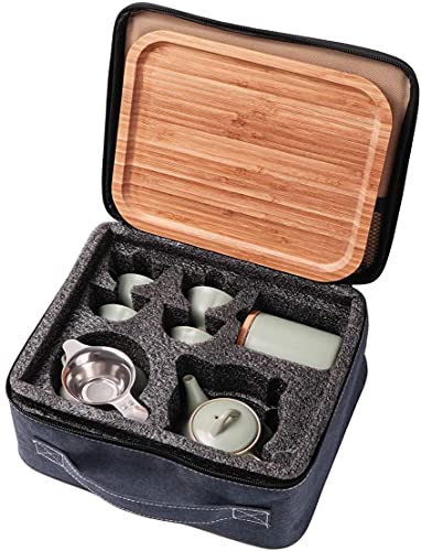 Mini theeset, uitgerust met draagbare reistassen, handig opbergen en dragen, klaar om van thee te genieten.