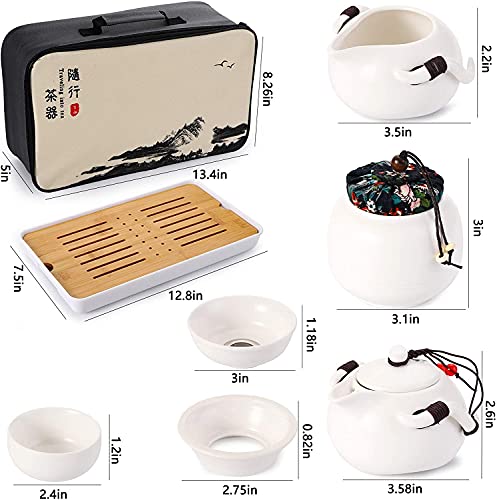Super Value Pakket: 1 x Theepot, 4 x Theekop, 1 x Gongdao Cup, 1 x Thee Zeef, 1 x Thee Canister, 1 x Thee Clip, 1 x Thee Mat, 1 x Travel Bag; Het keramische product is verpakt met schuim en schokbestendige doos om te voorkomen dat gebroken op de verzendmanier; Hoge temperatuur bakken van hoogwaardig keramiek, fijne textuur, hard en duurzaam, mooi, eenvoudig en praktisch. ; Theepot: 9,1 x 6,6 cm, Theepot: 2,4 x 1,2, Fair cup: 3,5 x 5,6 cm, Theepot. 3,1 x 3 inch, Thee zeef: 3 x 1,2 inch; Deze draagbare theeset is gemakkelijk mee te nemen, of u nu buiten bent, op zakenreis bent of op reis, waardoor het handig is voor u om te genieten van een ontspannen thee tijd met uw familie en vrienden op elk moment en plaats. ; Als cadeau voor vrienden of ouderen op verjaardagen of feestdagen