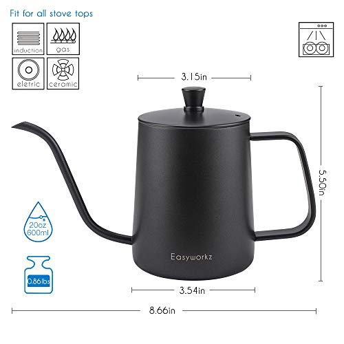 Easyworkz Giet over Waterkoker Roestvrij Staal Zwanenhals Lange Smalle Druppeluitloop Koffie Pot 600ml (Zwart)