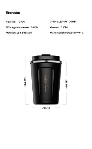 Specification: Heemburg Koffiebeker voor onderweg Coffee-to-go thermobeker zwart 350 ml van roestvrij staal met dubbelwandige isolatie…