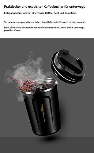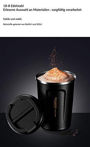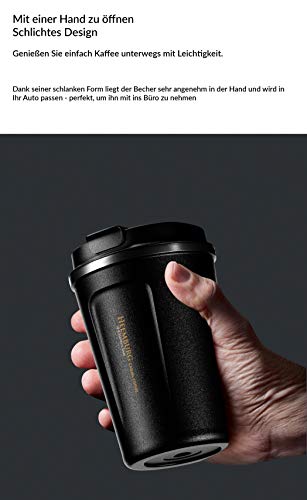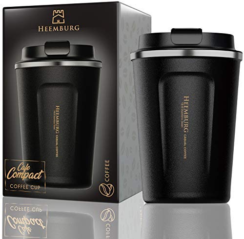 Heemburg Koffiebeker voor onderweg Coffee-to-go thermobeker zwart 350 ml van roestvrij staal met dubbelwandige isolatie…