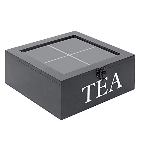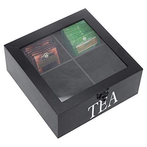 Specification: Houten Theedoos, Theedoos 4 Vakken, Thee Opbergdoos, Opbergdoos Voor Theezakjes Vierkante Theedoos Met Transparant…
