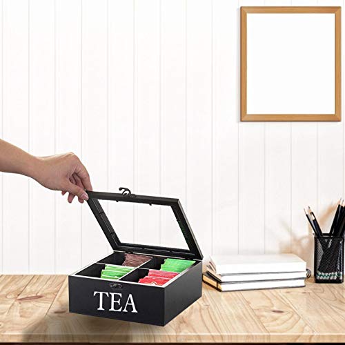 Houten Theedoos, Theedoos 4 Vakken, Thee Opbergdoos, Opbergdoos Voor Theezakjes Vierkante Theedoos Met Transparant…