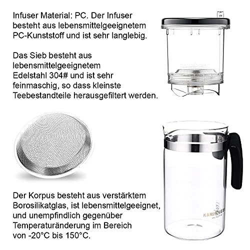 Specification: KAMJOVE Theepot 500 ml met filterzeef, glazen kan, mondgeblazen borosilicaatglas, theeservies, all-in-one set, theepot…