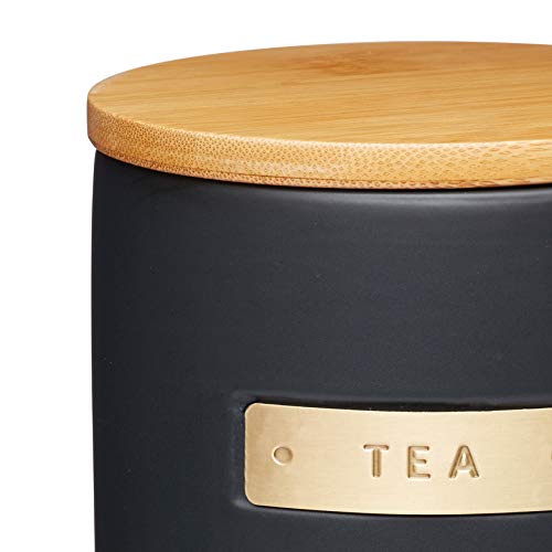 KitchenCraft MasterClass Theedoos van aardewerk, met messingeffect en luchtdicht deksel van bamboe, 1 l (1,75 pt…