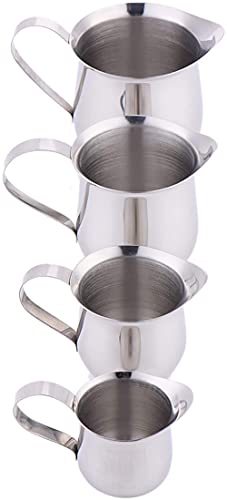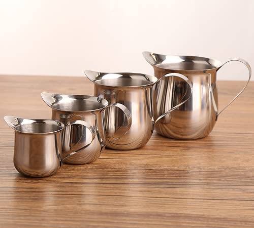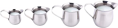 Kleine melkbeker is gemaakt van roestvrij staal van voedingskwaliteit, solide constructie.
