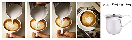 Specification: Kleine roestvrijstalen melkbeker, draagbare koffiemelk Melkopschuimerbeker, voor het maken van cappuccino-koffielatte