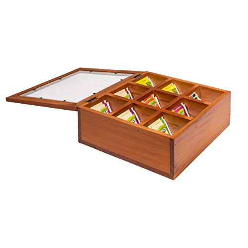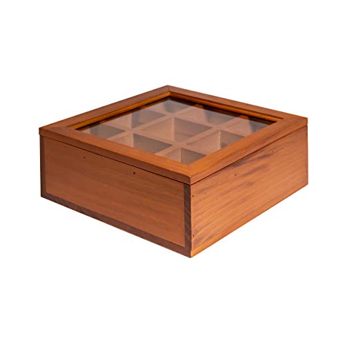 QUVIO Theebox (9 vakken van 6 x 6 x 7cm) / Theedoos/Theekist/Theedoos van hout en glas/Bamboo/Houten theekist/Luxe…