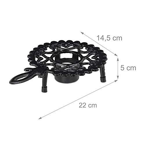 Relaxdays Stoofje, voor thee- en koffiepotten, gietijzer, voor 1 theelichtje, antiek design, rustieke theewarmer, zwart…