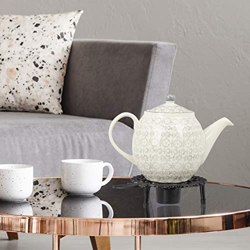 Zet thee- of koffiekan op het antieke theelichtje stoofje en geniet van je favoriete warme drank tot de laatste mok met de ideale temperatuur. Het aantrekkelijke vintage design met ornamenten ziet er daarbij op elke koffietafel chique uit. Door de zware kwaliteit is de gietijzeren theeverwarmer in landelijke stijl bijzonder stabiel. Door middel van een waxinelichtje blijven dranken aangenaam warm en de gezellige en uitgebreide teerond staat niets meer in de weg. Opmerking: Laat het stoofje na gebruik afkoelen voordat je het aanraakt. Stoofje in detail; afmetingen h x b x d: ca. 5 x 22 x 14, 5 cm. Plaat: ca. 14,5 cm. Gewicht: ca. 0,5 kg – Materiaal: gepoedercoat gietijzer – Kleur: zwart theelicht stoofje in vintage look – antiek ornamentaal landhuis design – voor het lang warm houden van thee en koffie – zware kwaliteit van rustiek gietijzer – warmhouder met uitsparing voor 1 theelicht- comfortabel op het oor transporteren Levering – 1x theeverwarmer – Zonder pot en theelicht- Decoratieve artikelen niet bij de levering inbegrepen