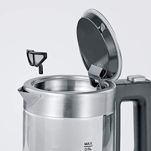 Details: Severin mini-glazen waterkoker met kalkfilter, waterkoker van glas en roestvrij staal, door roestvrij staal verborgen verwarmingselement, artikelnr. 3472