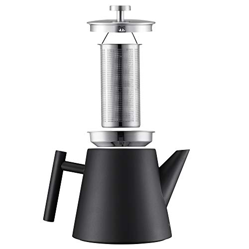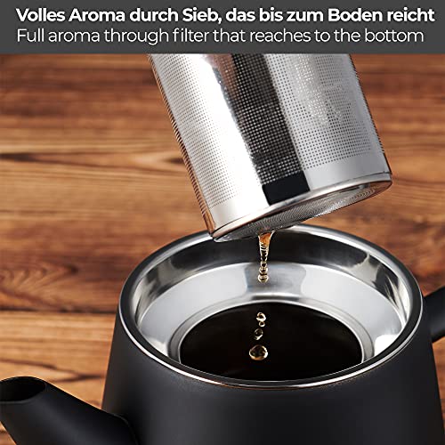 Theepot met een zeef met fijne poriën van roestvrij staal, voorkomt theeresten in de kan.