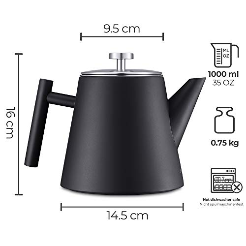Specification: SILBERTHAL Theepot met zeef, roestvrij staal,dubbelwandig, inhoud van 1 liter, zwart