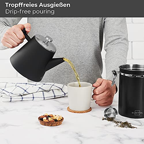 SILBERTHAL Theepot met zeef, roestvrij staal,dubbelwandig, inhoud van 1 liter, zwart