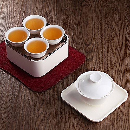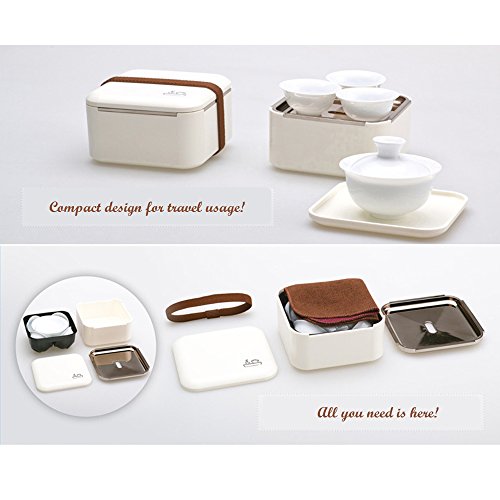 Specification: TAMUME Draagbare Kung Fu porseleinen theeset reis theeset – 1 porseleinen theepot, 4 kopjes, wit