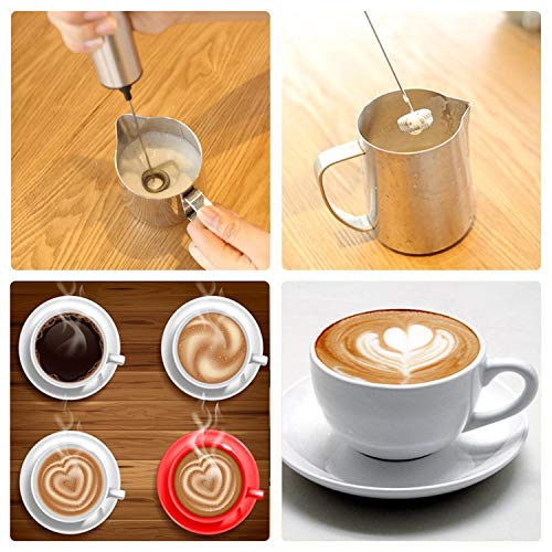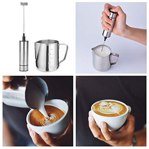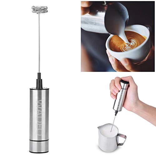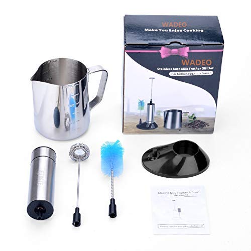 Wadeo Elektrische melkopschuimer met standaard elektrische melkopschuimer op batterijen, roestvrij staal, dubbele garde…