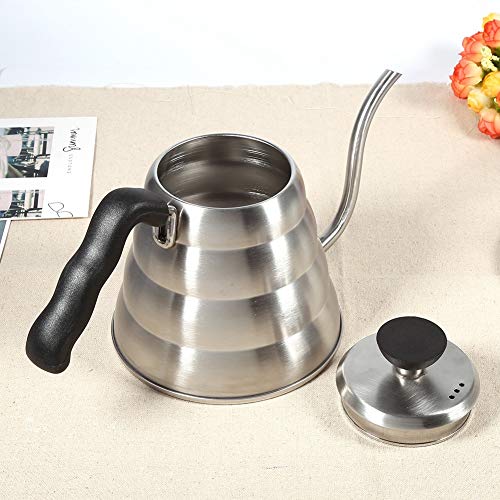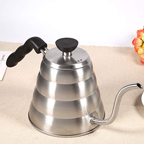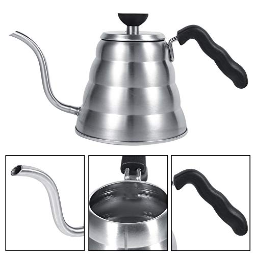 Dit artikel is gemaakt van hoogwaardig roestvrij staal met een gepolijste afwerking, roestvrij en corrosiebestendig, duurzaam te bedienen en gemakkelijk te reinigen. Hij heeft een duurzame handgreep, die comfortabel en veilig in de hand houdt als je kokend water of thee of koffie uit de pot giet. Met het leuke ontwerp van de zwanenhals is hij perfect voor het uitgieten van warm water met precisie op het brouwsysteem. Koffie voor handmatige bereiding. Ook geschikt voor gas-, elektrische en inductiekookplaten.