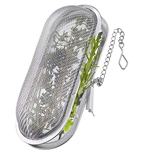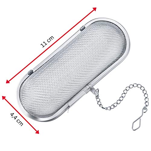Ovale kruidenzeef met het ideale formaat om specerijen en kruiden in de pot te hangen tijdens het koken; ook voor het bereiden van kruidenthee