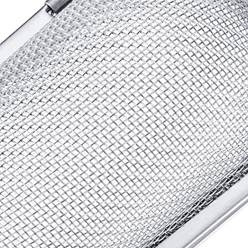 Eenvoudig te vullen door de zeef open te klappen; met vergrendelingsmechanisme aan de zijkant; goede grip dankzij lange ketting met haakje