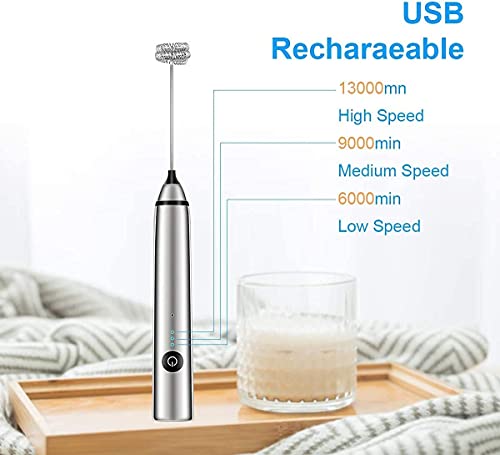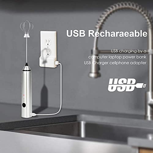 WPHGS Handheld melkfolie, USB oplaadbare roestvrij drinken Mixer ei Whisks, 3 snelheden Verstelbare elektrische…