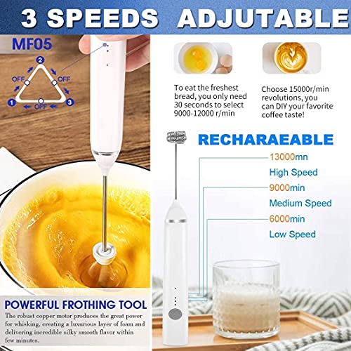 Specification: WPHGS Melkfolie, Handheld Melk Frothers USB oplaadbare, koffie-folie Elektrische Whisk, 3 versnelling verstelbare…